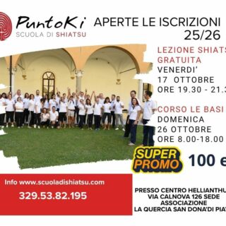Sono ufficialmente aperte le iscrizioni al nuovo anno formativo 2025/2026 della Scuola di Shiatsu PuntoKi, una realtà riconosciuta da A.P.O.S. che da anni forma operatori capaci di unire competenza, sensibilità e passione per il benessere.
